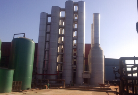 氨氮廢水在堿性條件和一定溫度下,通過專用塔板,在空氣的動力作用下,使廢水中的游離氨大程度進入空氣中,從而降低廢水中氨氮含量,吹脫出的氨氣進入高效回收塔,可直接回收25%的硫酸銨產(chǎn)品,也可通過分離裝置直接回收高純度的硫酸銨晶體。經(jīng)我公司多年的研究、改進和優(yōu)化,吹脫塔脫效率可達92%以上,該設(shè)備目前已廣泛應(yīng)用于煤化工、有色金屬、精細化工等行業(yè)。